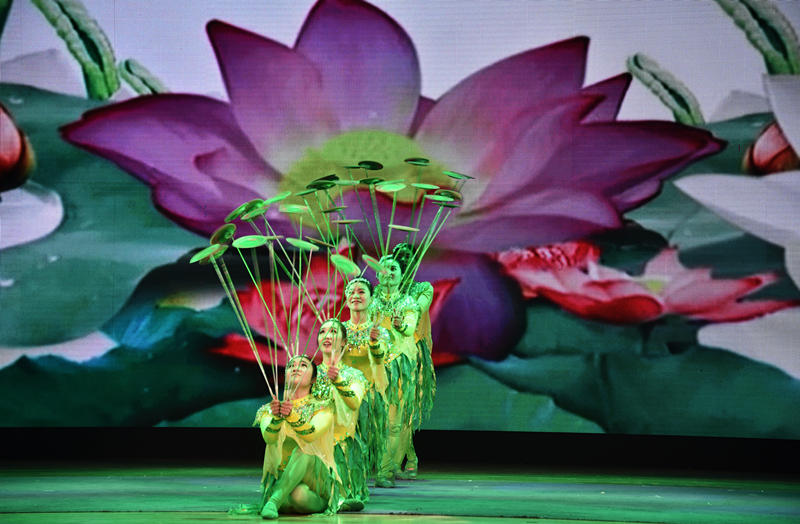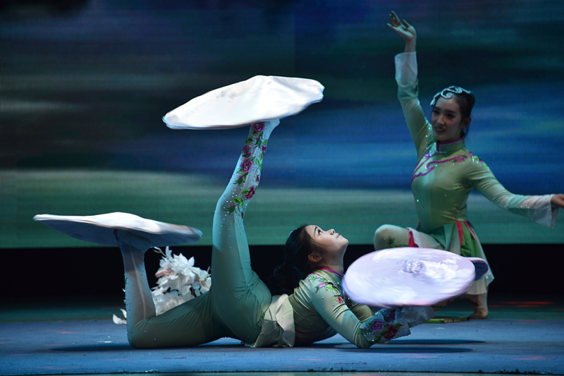 杂技《荷韵--转碟》曾荣获全国杂技大赛优秀节目奖,演员们用一根长约一米,粗如铅笔的竿子顶着碟底,晃动旋转,看上去似迎风而立的荷花,又若飞舞的彩蝶,优美而抒情。