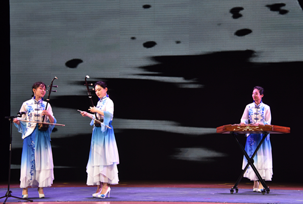 民乐合奏用琵琶、二胡、古筝、扬琴、笛子、唢呐等中国传统民族乐器演奏捷克名曲德沃夏克的《斯拉夫舞曲》,是用中国传统技法演绎西方故事的音乐形式创新;