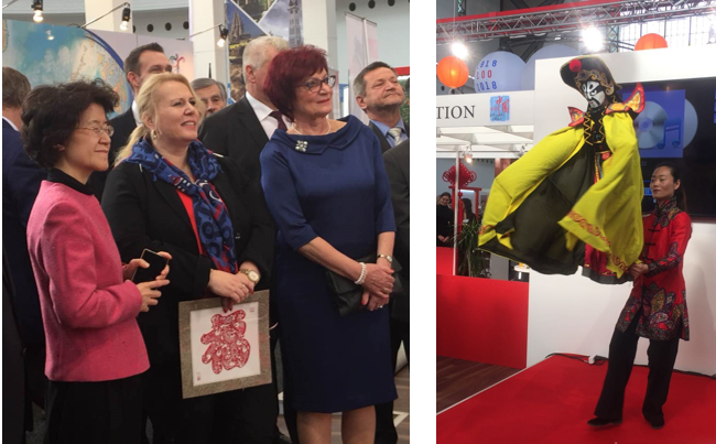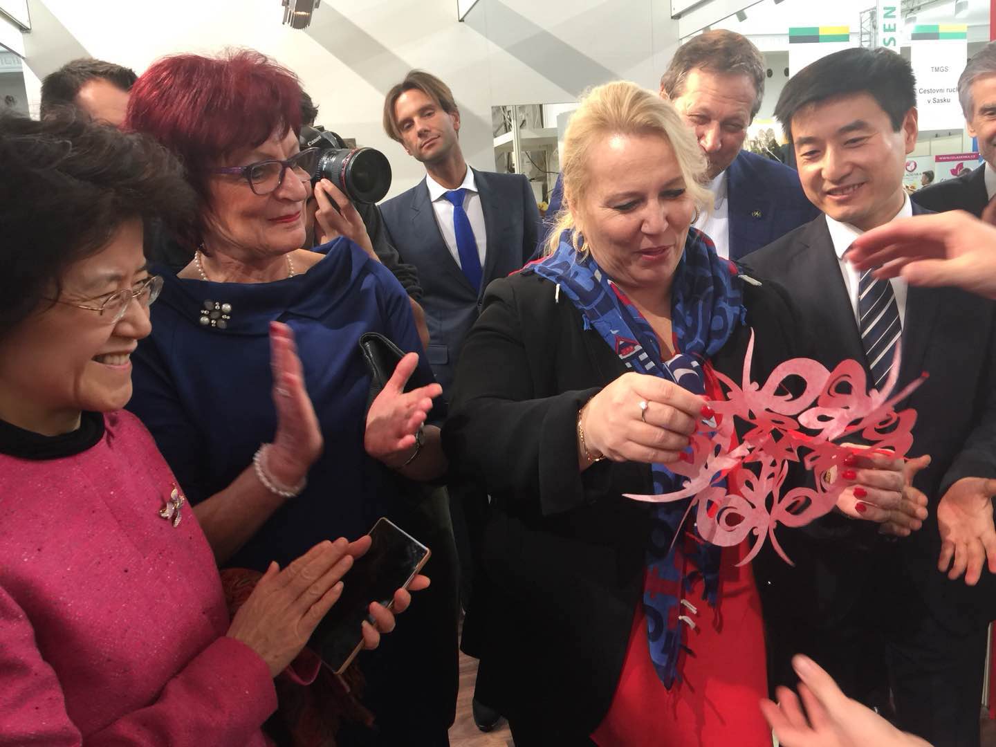 爱涛文化集团“欢乐春节·精彩江苏”文化艺术展演团向与会宾客呈献了精妙的江苏非遗剪纸技艺、扬州木偶《变脸》绝活和高难度的唢呐演奏《百鸟朝凤》等节目,精彩的表演使中国展位在交易会上倍受瞩目,前来参观的捷克地方发展部部长多斯塔洛娃女士、捷克世界小姐代表等嘉宾对江苏艺术展演展示驻足观看,啧啧称赞,同时前来视察的驻捷大使马克卿女士、江苏省政府及江苏省文化厅领导对爱涛文化集团“欢乐春节·精彩江苏”文艺演出和非遗展示予以高度评价和充分肯定,中国展台还被主办方授予“最佳展台奖”和“最佳组织奖”。展演展示活动为深化捷中旅游领域交流与合作,共树“一带一路”旅游合作典范推波助澜。