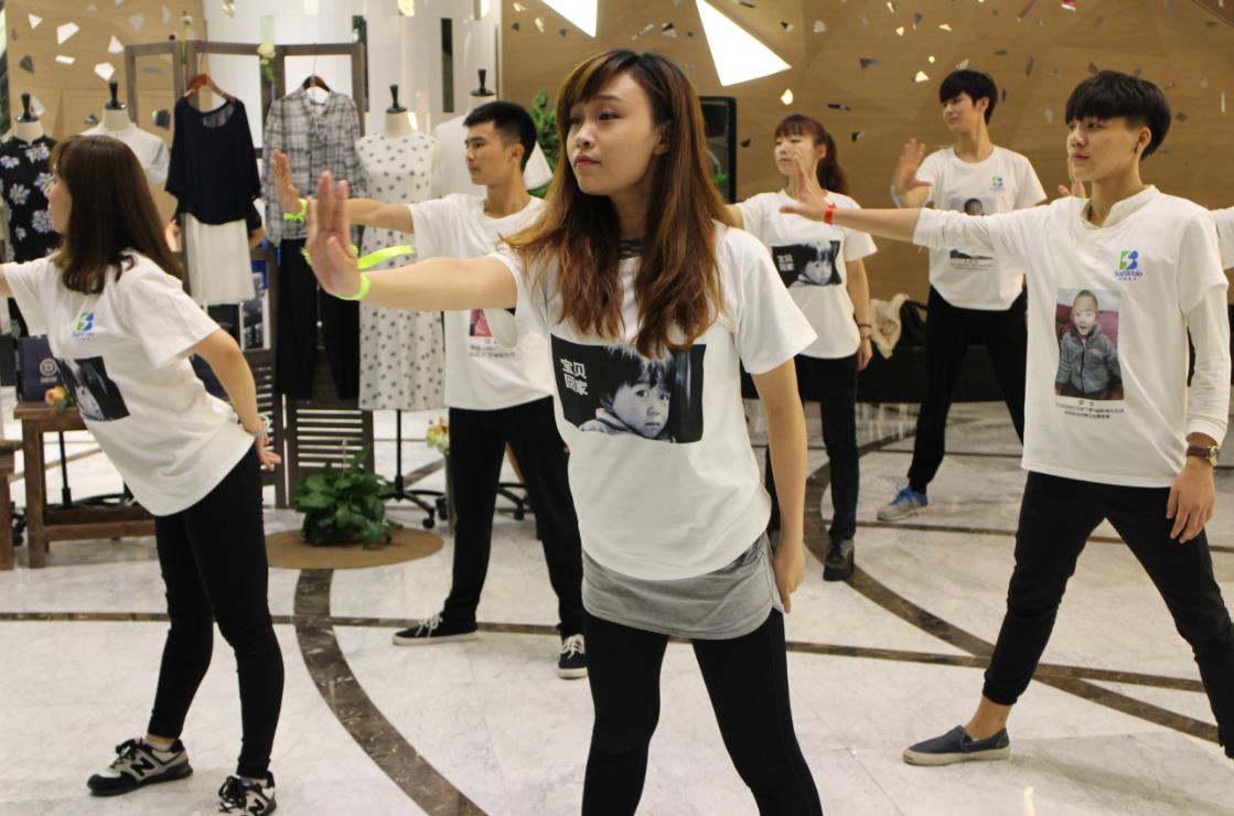 5月25日,20余名年轻的舞者齐聚南京新街口新百商场,举行由爱涛交响乐团与新百联合举办的“爱我,请帮我回家!”快闪活动,以唤醒公众对“5.25国际失踪儿童日”的注意。同时,希望以这一不寻常的形式引起社会重视失踪儿童问题,呼吁大家提高防拐意识,并为失踪儿童积极提供有效线索,从而降低我国儿童的走失率以及提高找回率。