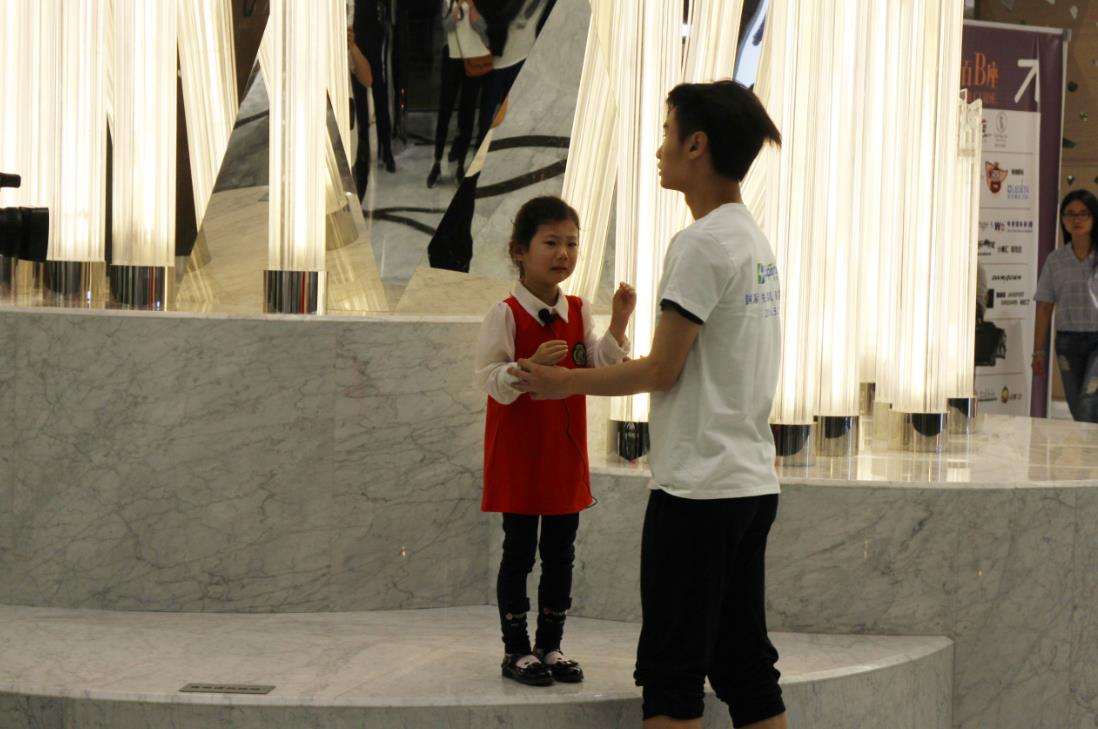 当天晚间7点半左右,在南京新百商场的大厅,一名手系彩色丝带的小孩,出现在人群中,到处寻问路人有没有看到他的家人,十分无措。在穿梭的人群中,大家略带惊疑却并未在意,突然听他大喊一声“爸爸妈妈!”,周围的人群迅速被他吸引过来。这时,约20名左右的青年从楼梯上、服装店里、商场门口迅速聚集到孩子身边,细看不难发现他们每人身上都印上了一名失踪儿童的照片及信息。随后音乐响起,是苏芮“亲爱的小孩”,舞者们围绕小孩纷纷起舞。行人驻足聚拢过来,感受这动人的一幕。