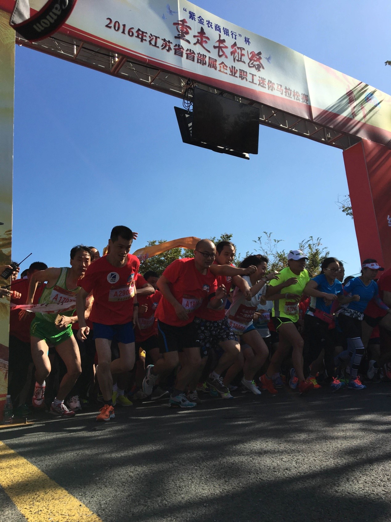 在红军长征胜利80周年纪念日即将到来之际,由江苏省国资委主办、江苏省体育竞赛有限公司承办,江苏苏豪传媒有限公司协办的《“紫金农商银行杯”重走长征路——2016江苏省省部属企业职工迷你马拉松赛》于10月9日在南京奥林匹克博物馆隆重举行。本次迷你马拉松赛全程8公里,全程围绕河西风光带进行。
