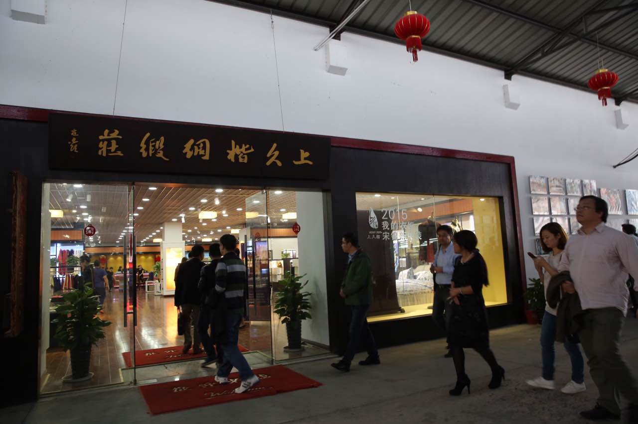 抵达盛泽后,苏豪传媒单凤艳副总经理带队参展商参观非遗宋锦馆,零距离触摸APEC领袖风采,分享国礼之尊。随后参观了先蚕祠、华佳丝博园,了解绸都丝韵水乡,感受中国纺织名镇,流行面料发布基地对丝绸的膜拜。