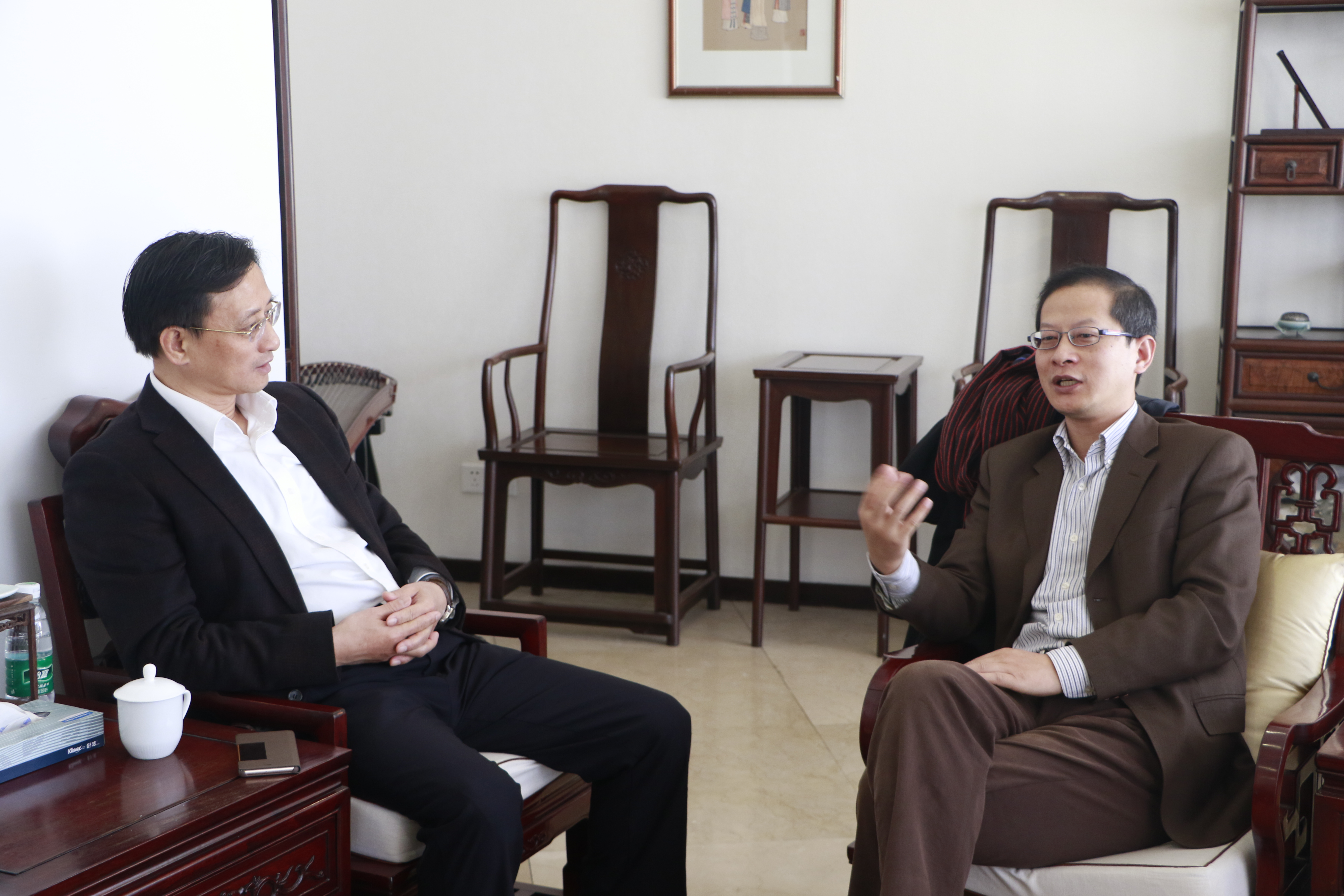 2016年11月11日上午,文化部外联局局长助理郑浩、江苏省文化厅对外文化交流处处长官天涛一行莅临爱涛文化艺术中心指导工作。苏豪控股集团副总裁李结祥、爱涛文化集团常务副总陈云梅接待并参与座谈会。