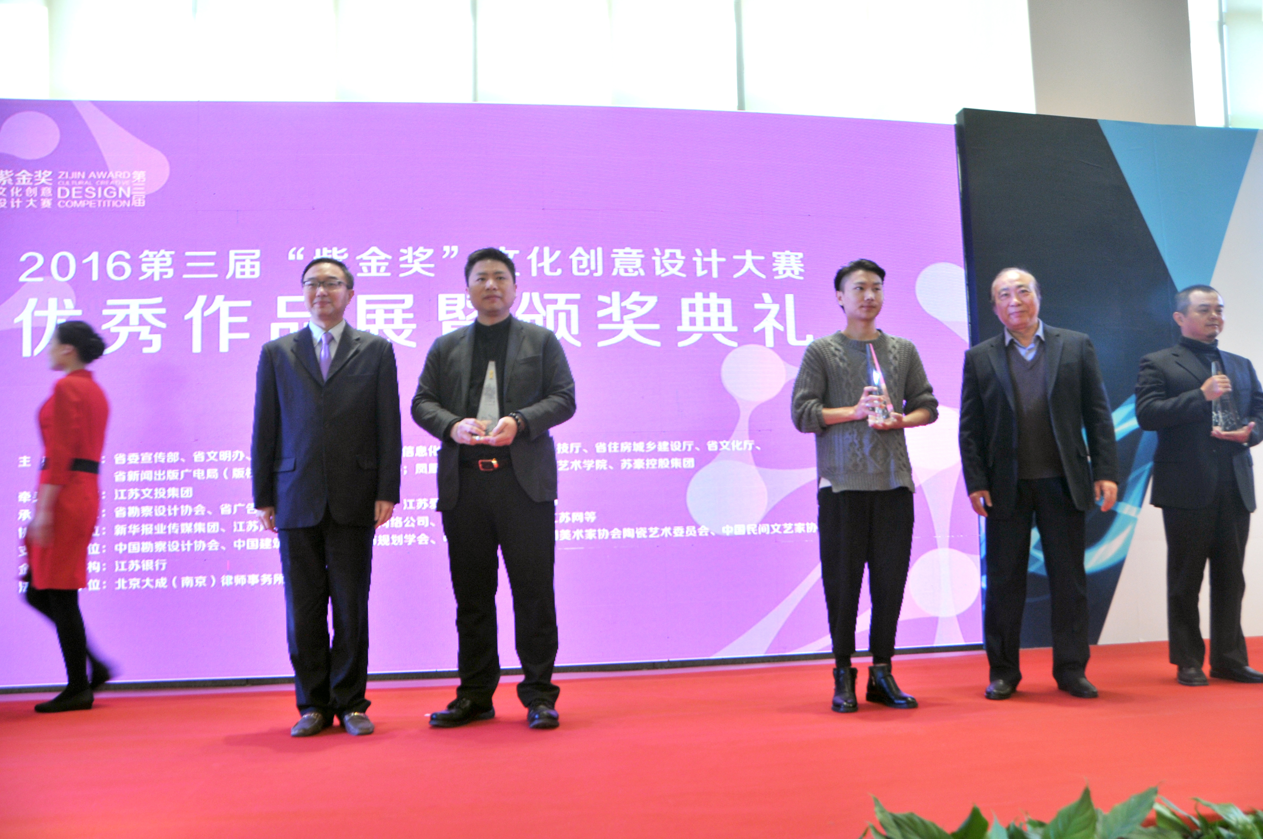 11月11日,第三届“紫金奖”文化创意设计大赛优秀作品展暨颁奖典礼在南京河西新城紫金文创园举行。大赛由江苏省委宣传部、江苏省苏豪控股集团等14家单位联合主办,江苏文投集团牵头承办,江苏爱涛文化产业有限公司具体承办现代手工艺设计大赛暨优秀作品展。苏豪控股集团总裁出席颁奖典礼,并为现代手工艺设计大赛金奖获得者颁奖。