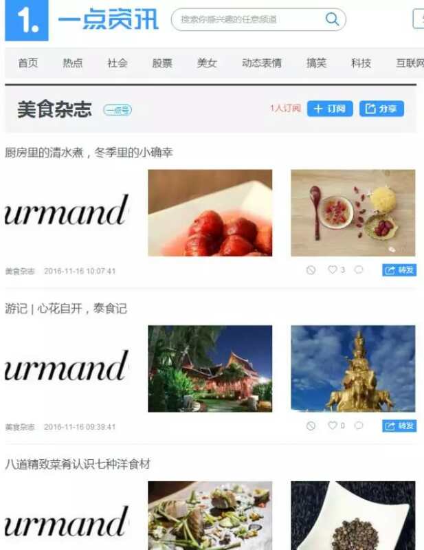 苏豪传媒旗下《美食》受邀入驻“一点资讯”和“今日头条”
