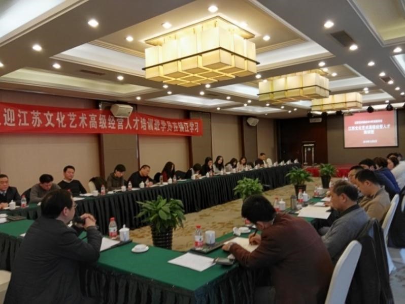 12月8日,由江苏省文化产权交易所承办的江苏艺术基金2016年度资助项目,江苏文化艺术高级经营人才培训班在江苏镇江举行第五次集中学习,自10月20日开班以来已经过四次集中理论学习,目前进入实践学习阶段,本次集中为期3天,学员系统研讨苏中地区文化产业发展现状及非遗文化传承保护和文化艺术经营实践活动。镇江市文广新局副调研员周连锁出席开课仪式并致欢迎辞。