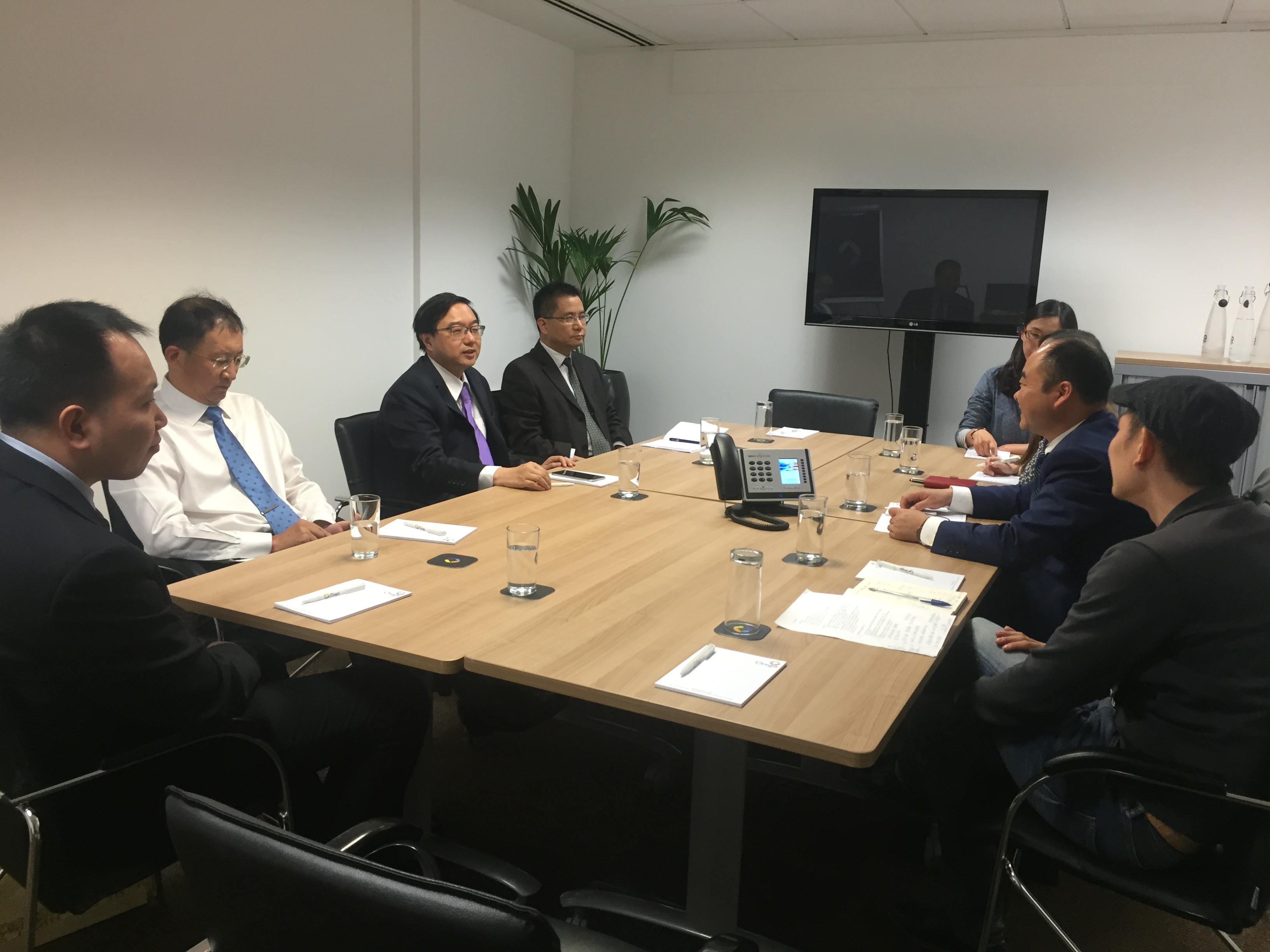 苏豪控股集团总裁周勇、总裁办公室主任邵寅初等一行人员于当地(伦敦)时间6月29日调研了爱涛文化(英国)中心及爱涛(英国)文化贸易公司。爱涛文化(英国)中心总经理岳良汇报了英国中心及贸易公司筹备工作进展和近阶段重点工作。