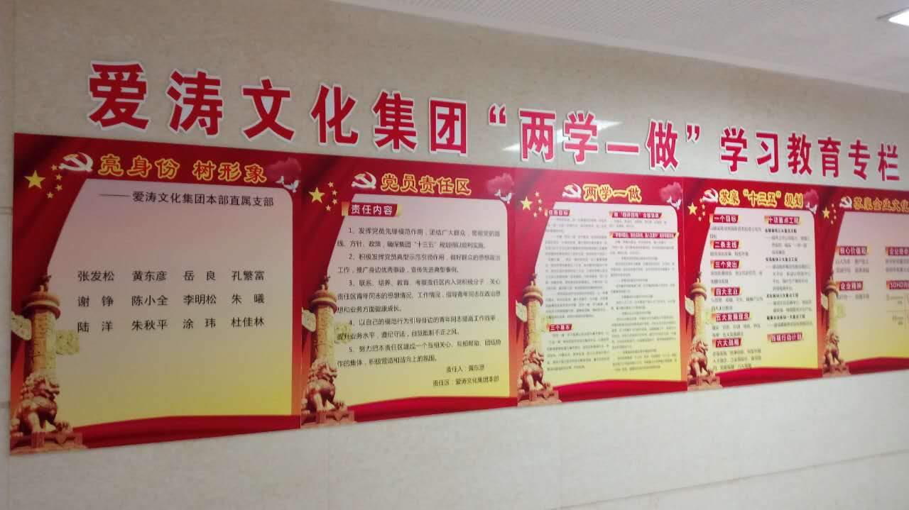 爱涛文化集团各支部开展“两学一做”专栏学习,设立党员示范岗